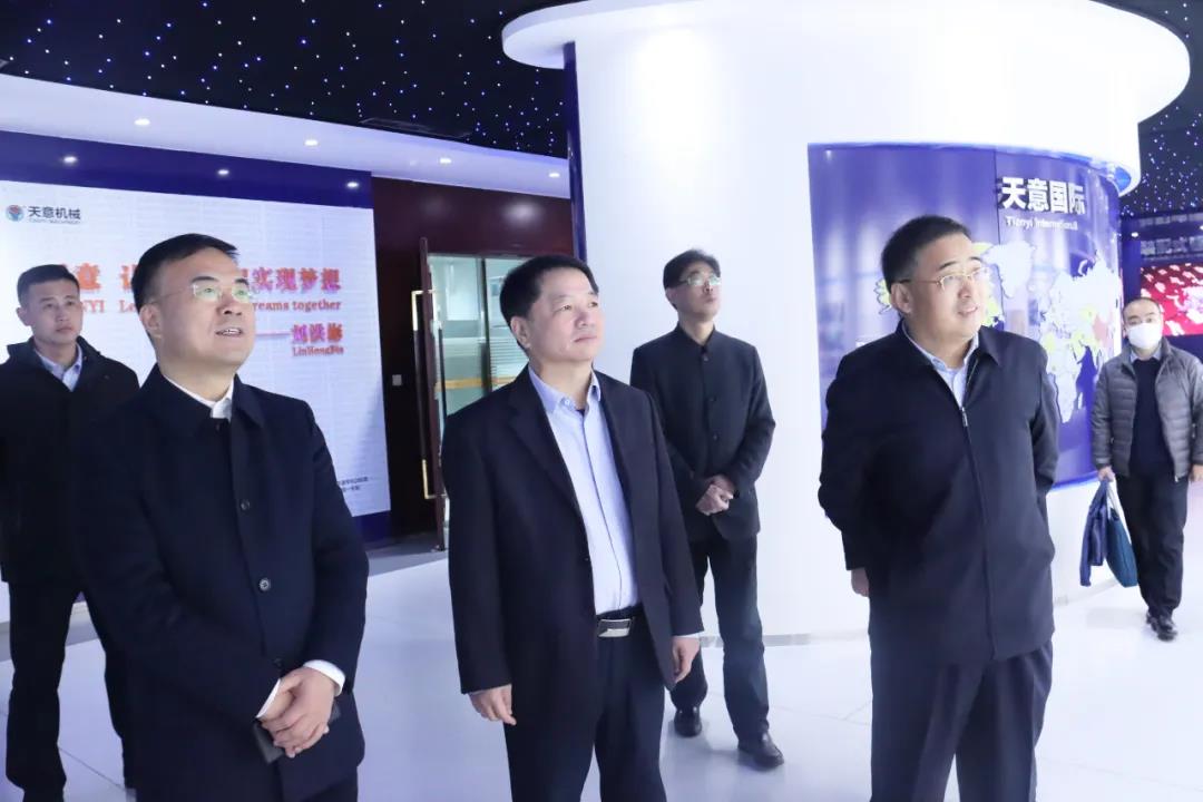 蔣萬云一行先后對天意機械高層次人才工作站、科技體驗館、紅領天意黨建展館、數字化車間等處進行走訪。他們邊走邊問詢,邊看邊交流,深入了解了檢察機關在服務和保障民營企業(yè)健康發(fā)展方面發(fā)揮出的重要作用。